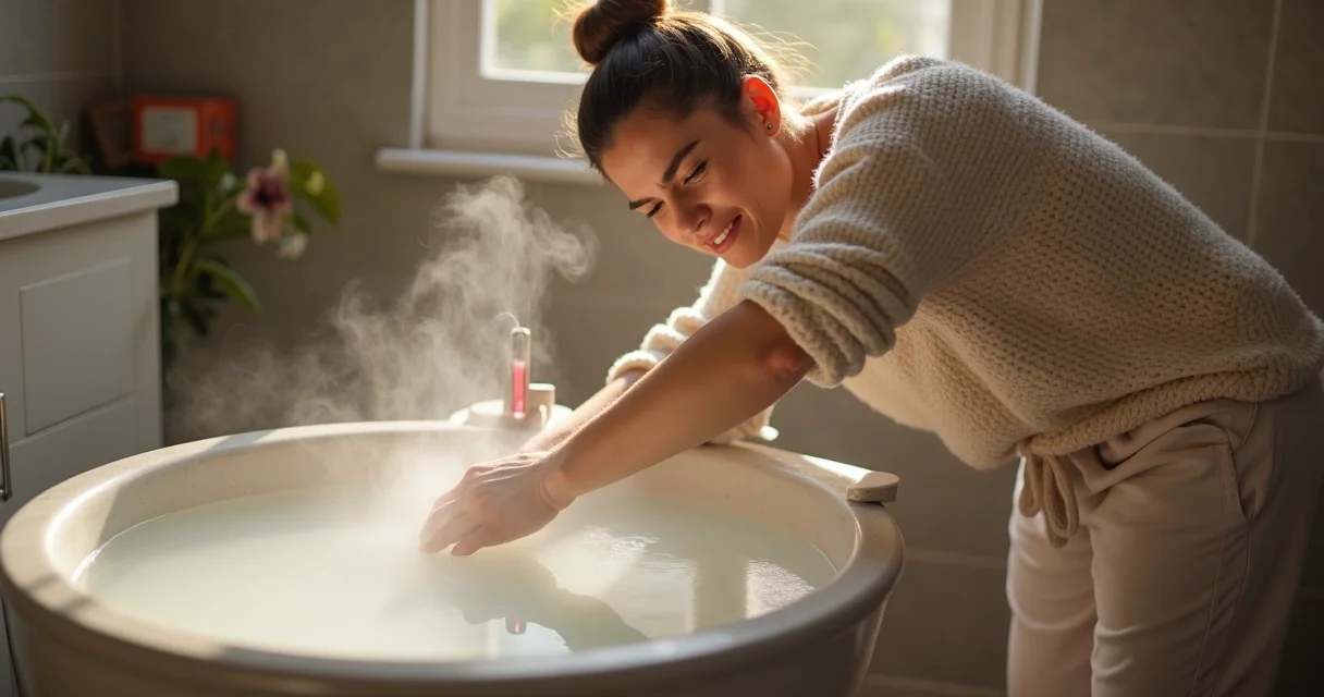 Aqui está o detalhe: a temperatura ideal fica entre 37°C e 40°C. É morna, não quente. Teste com o cotovelo antes dos pés – se queimar ali, está errado.